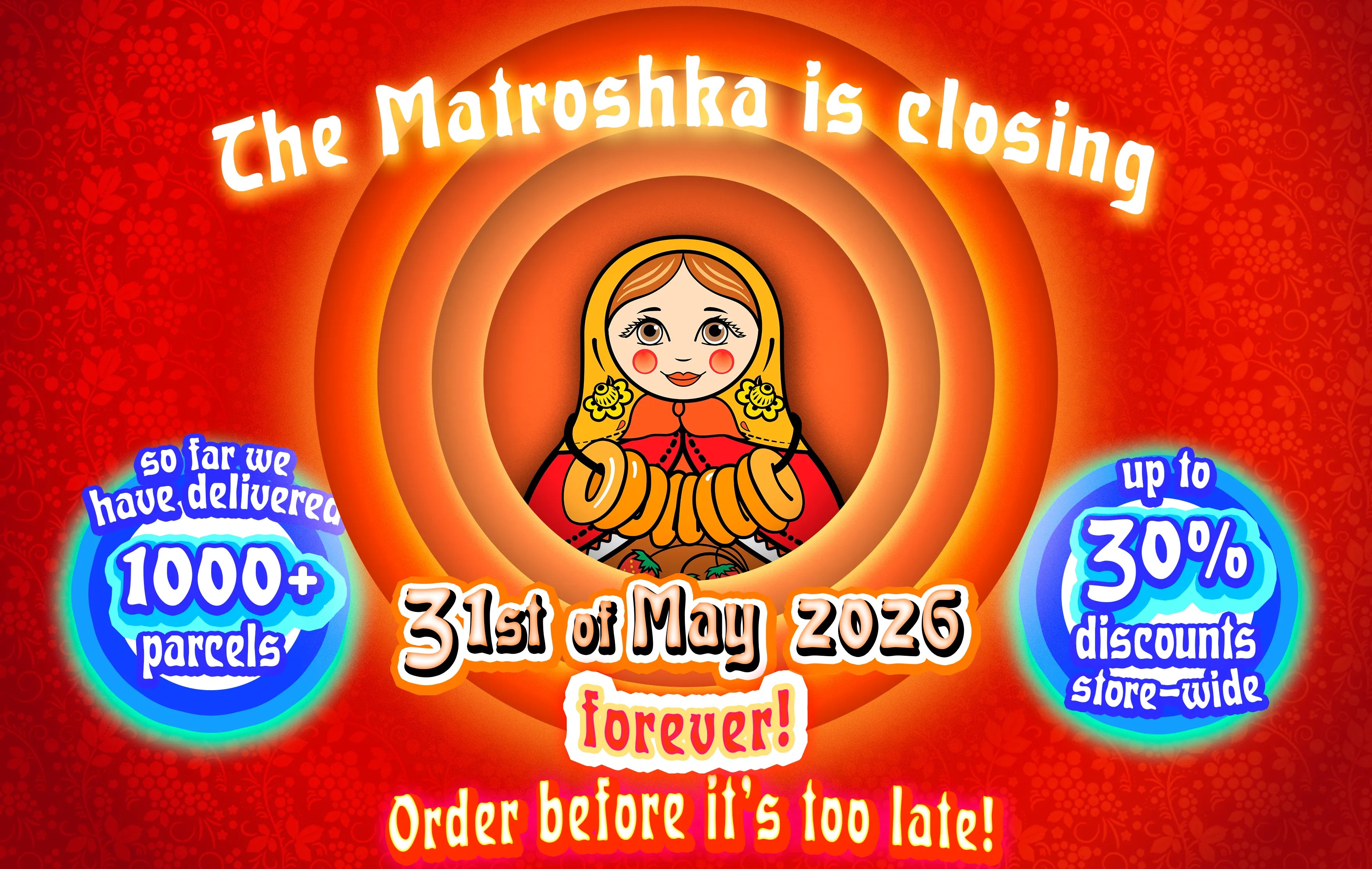 The Matroshka, the shop of Sweets, Treats, and other peculiar pleasures, will be CLOSING on the 31st of May, 2026... forever! We have already sent out more than one thousand...